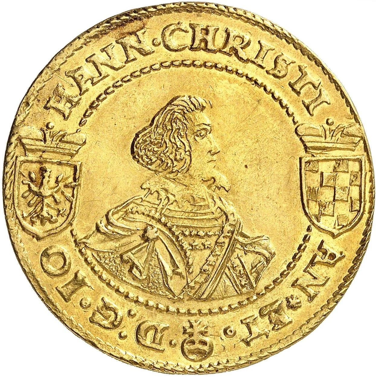Johann Christian facing right, legend below between two small shields.