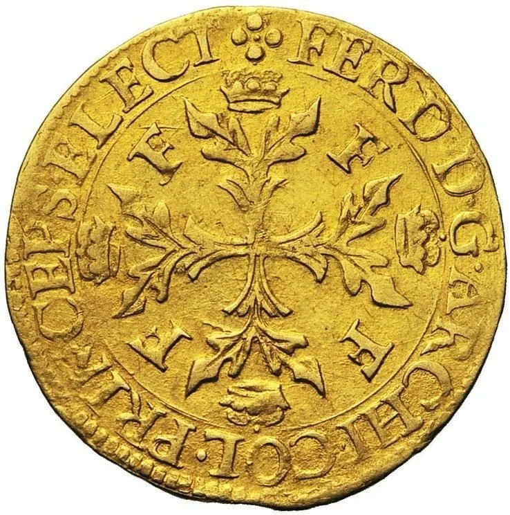 Floriate cross, forked ends crowned, F’s in angles.