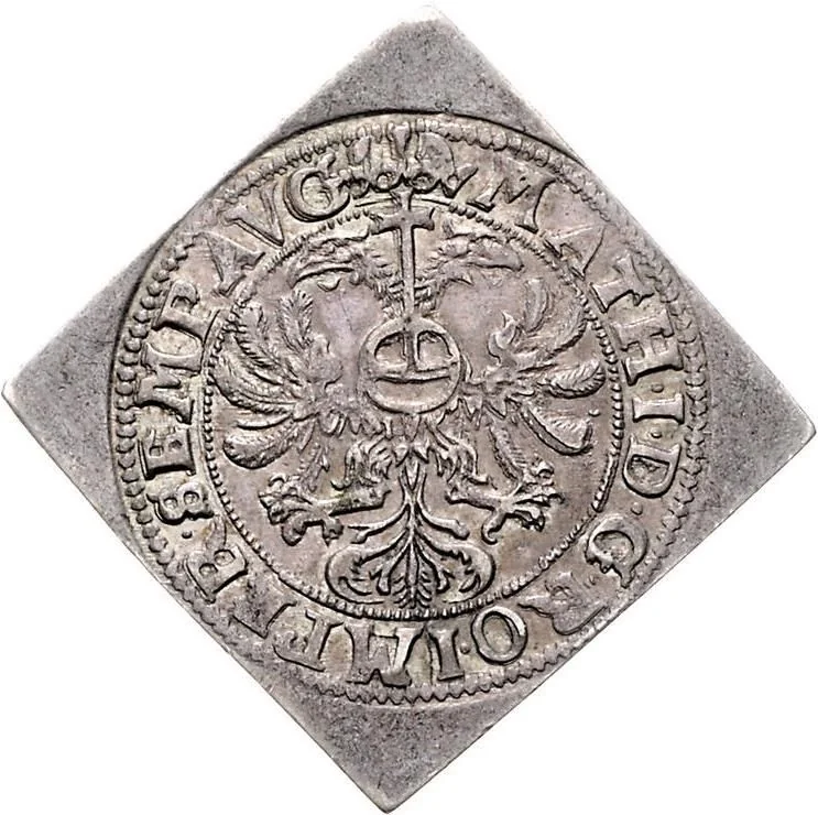 Imperial eagle with orb, crowned, bearing Matthias's titles.
