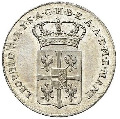 Quartered shield of Mantua with Austria-Lorraine inescutcheon.