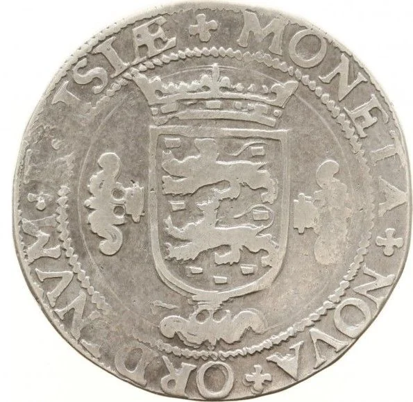 Frisian nobleman’s bust right, holding sword over shoulder, dividing value. Mintmark above.