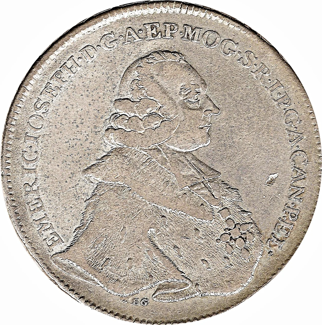 Bust of Emeric Joseph, encircled by legend.