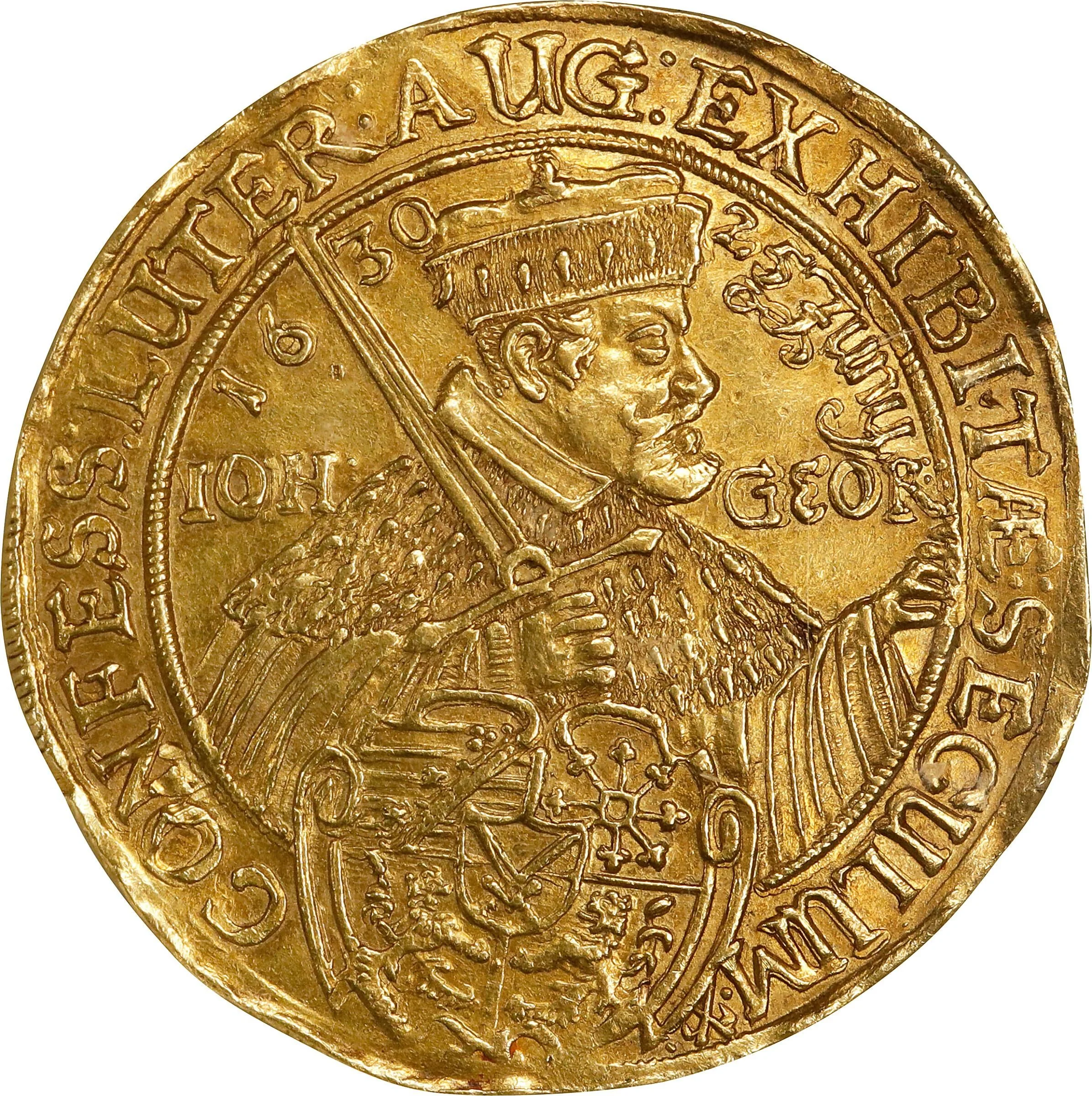 Johan faces right, holding a sword that divides the date. Arms are depicted below the bust.