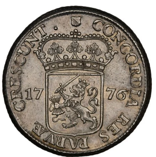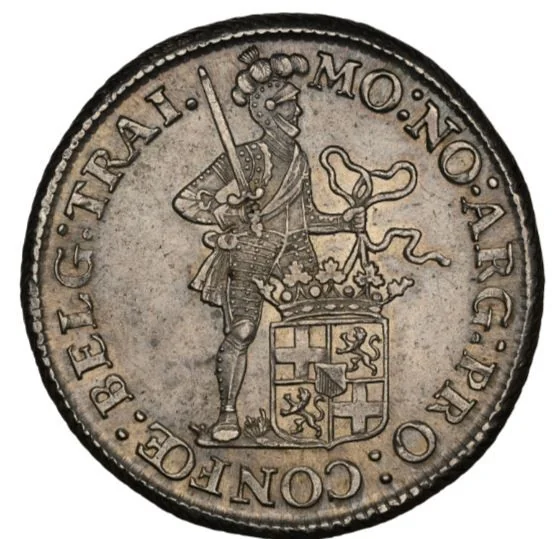 Arms of the United Provinces divide the date. Utrecht mint mark above crown.