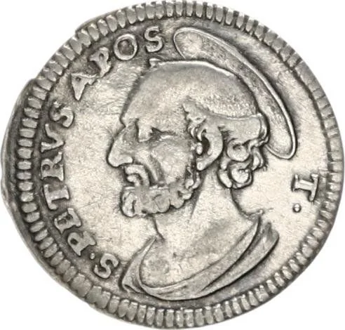 St. Peter's head, left-facing with halo.