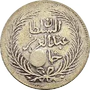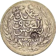 Bey, mint, value, and Islamic date in wreath. Countermarked with star.