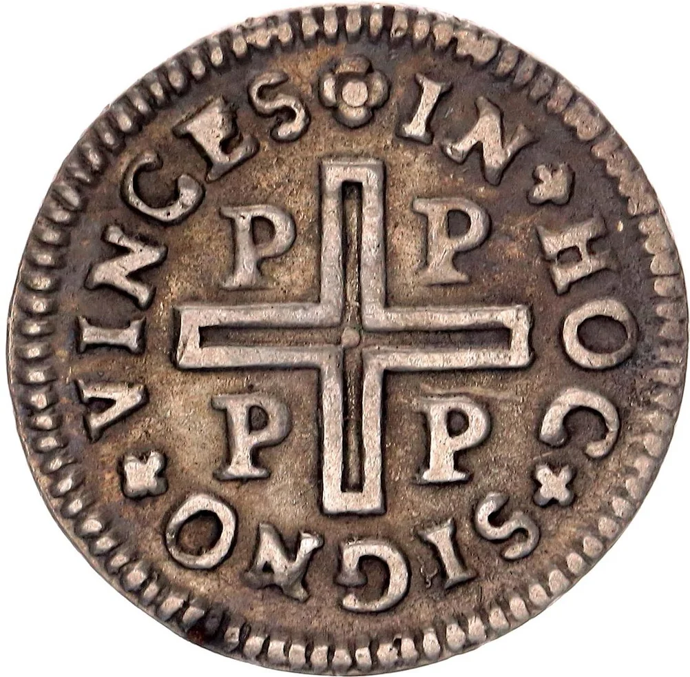 Cross with Ps at each corner, encircled by legend.