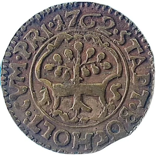 Beech tree divides "1 S" in centre. Outer circle lettering, date above.
