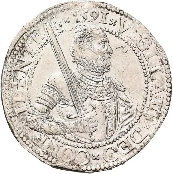 Armored bust of William the Silent facing right, sword on shoulder, within inner circle. Date above.