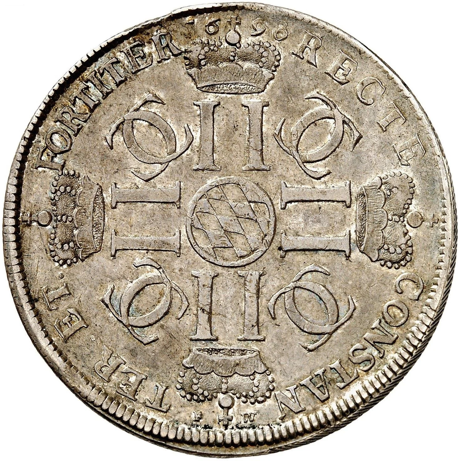 Crowned II's flank a central Bavarian arms; date above, double C's in angles.