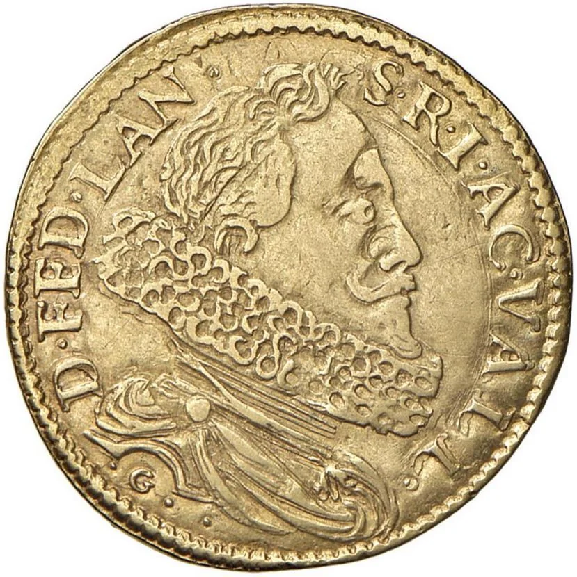 Crowned shield with a double-headed eagle and the Landi family arms.