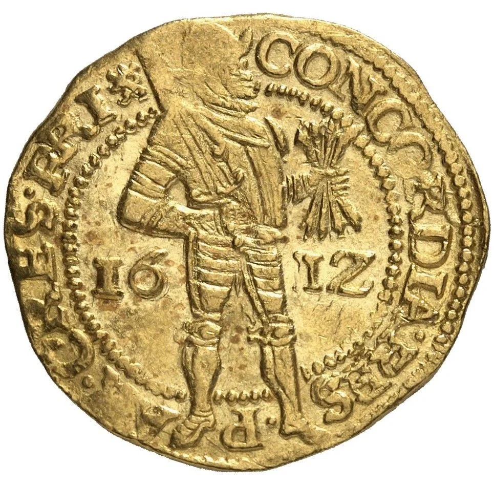 Armored knight facing right, dividing the date, holding a sword and arrows.
