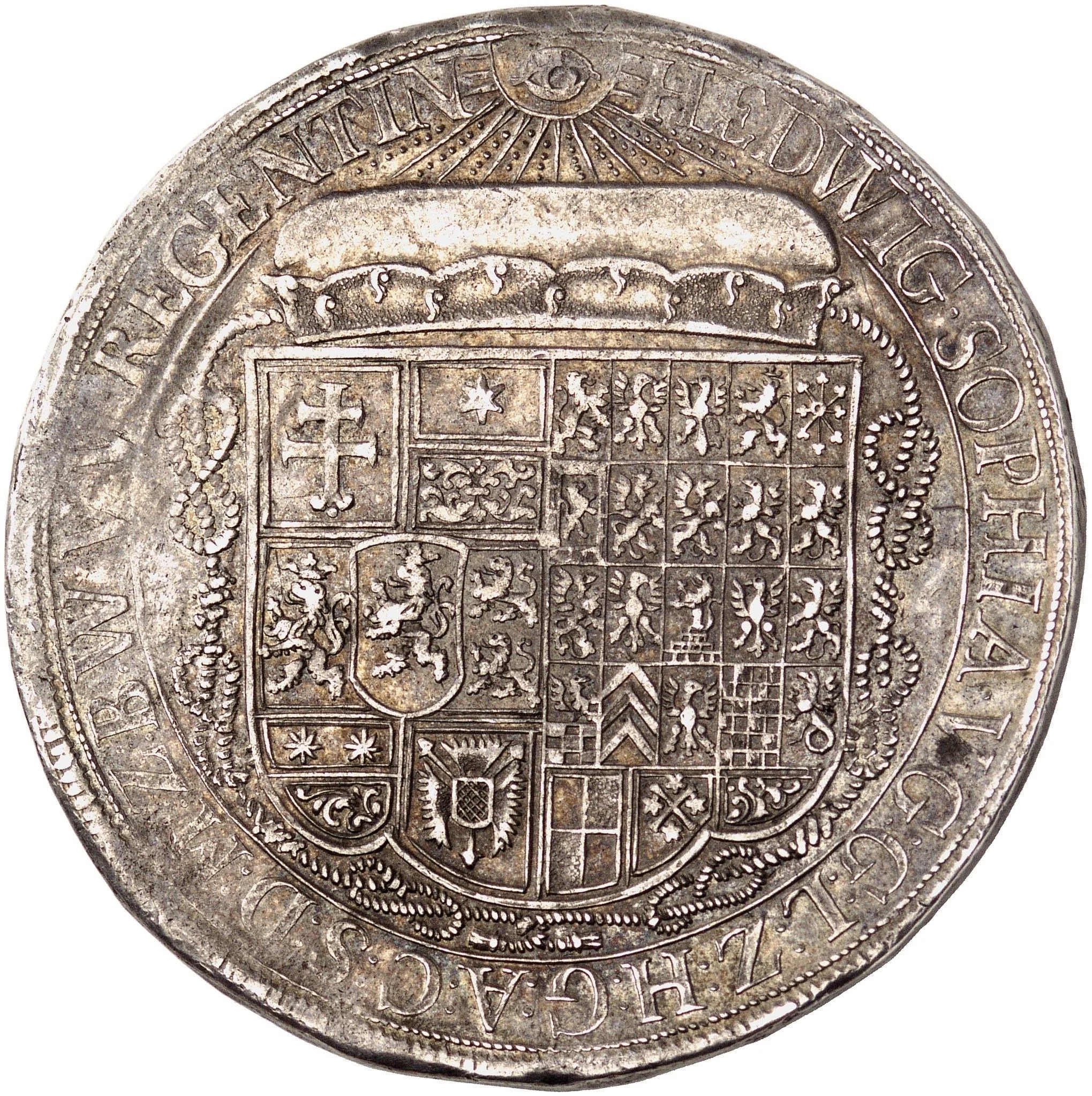 Divided shield with Hessian and Brandenburg arms, crowned.
