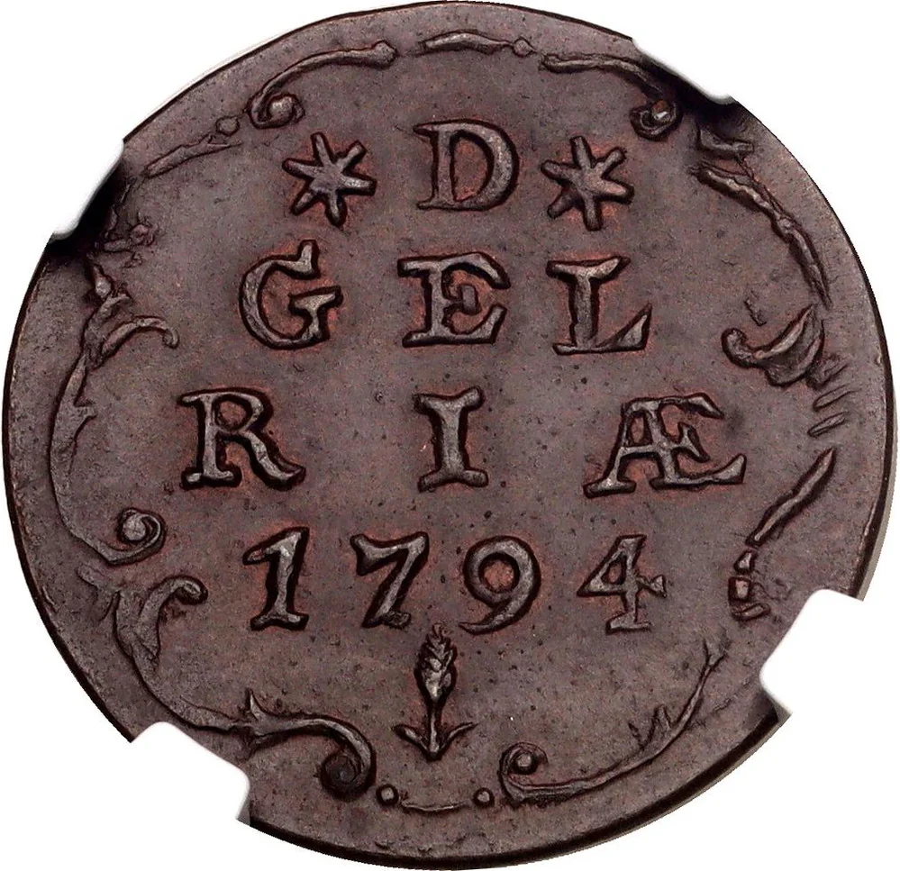 Province name (three lines), date with privy mark (ear of corn) below, all within a decorative border.
