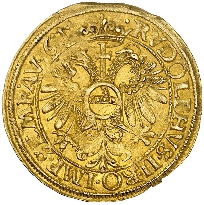 Imperial eagle, Rudolf II's titles, date in legend.