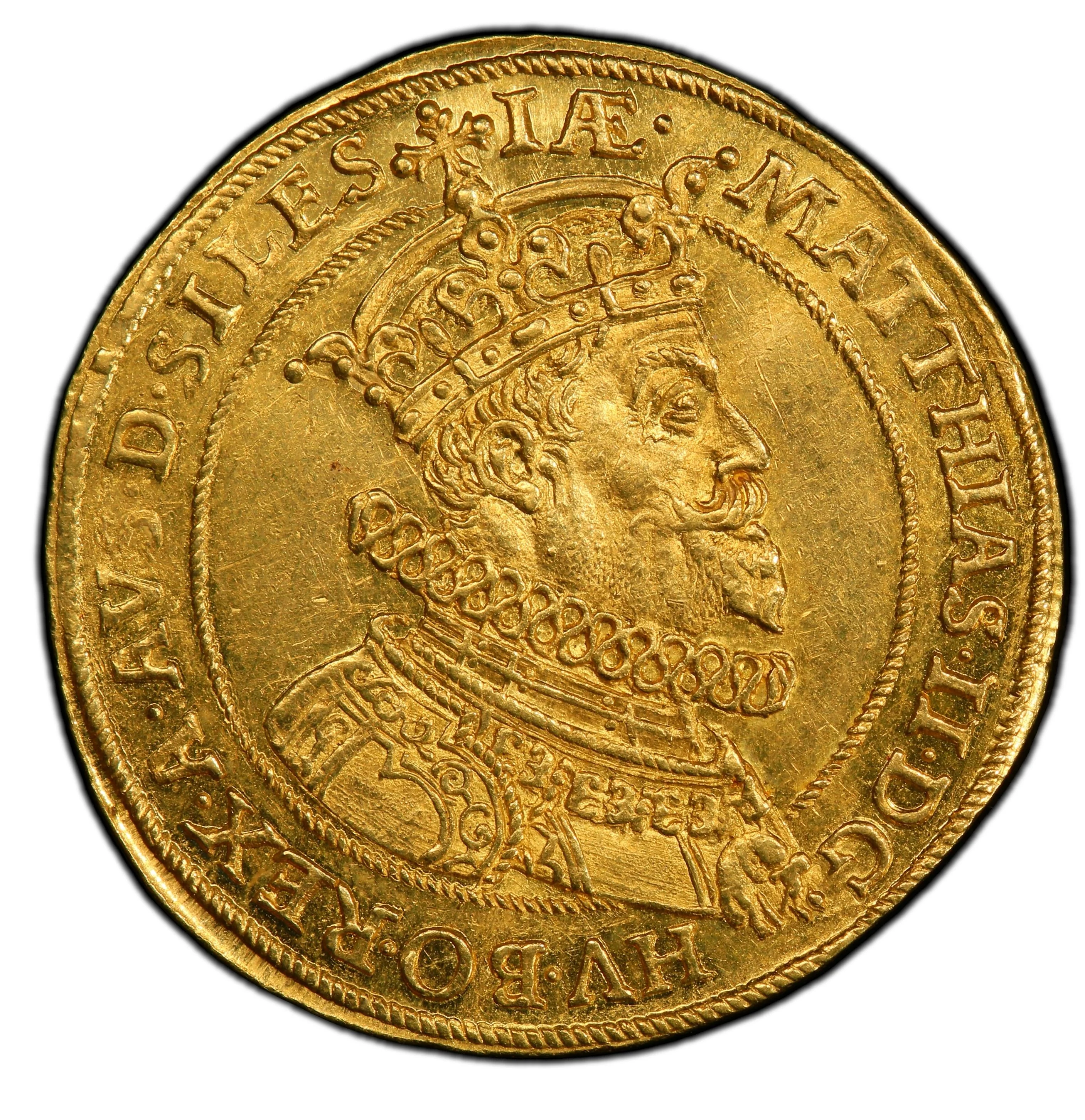 MATTHIAS. II. HV. BO. REX. A. AVS. D. SILES IÆ
