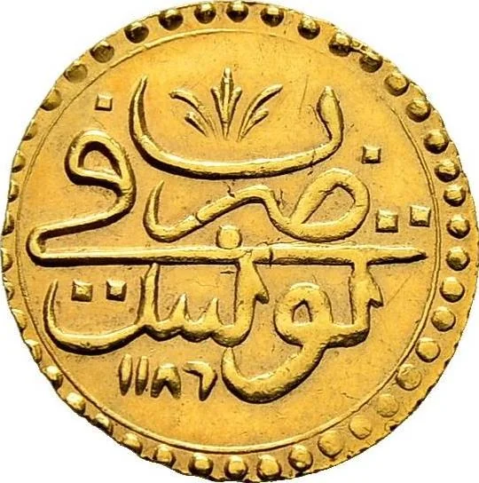 Mint mark and Hijri date in circle.