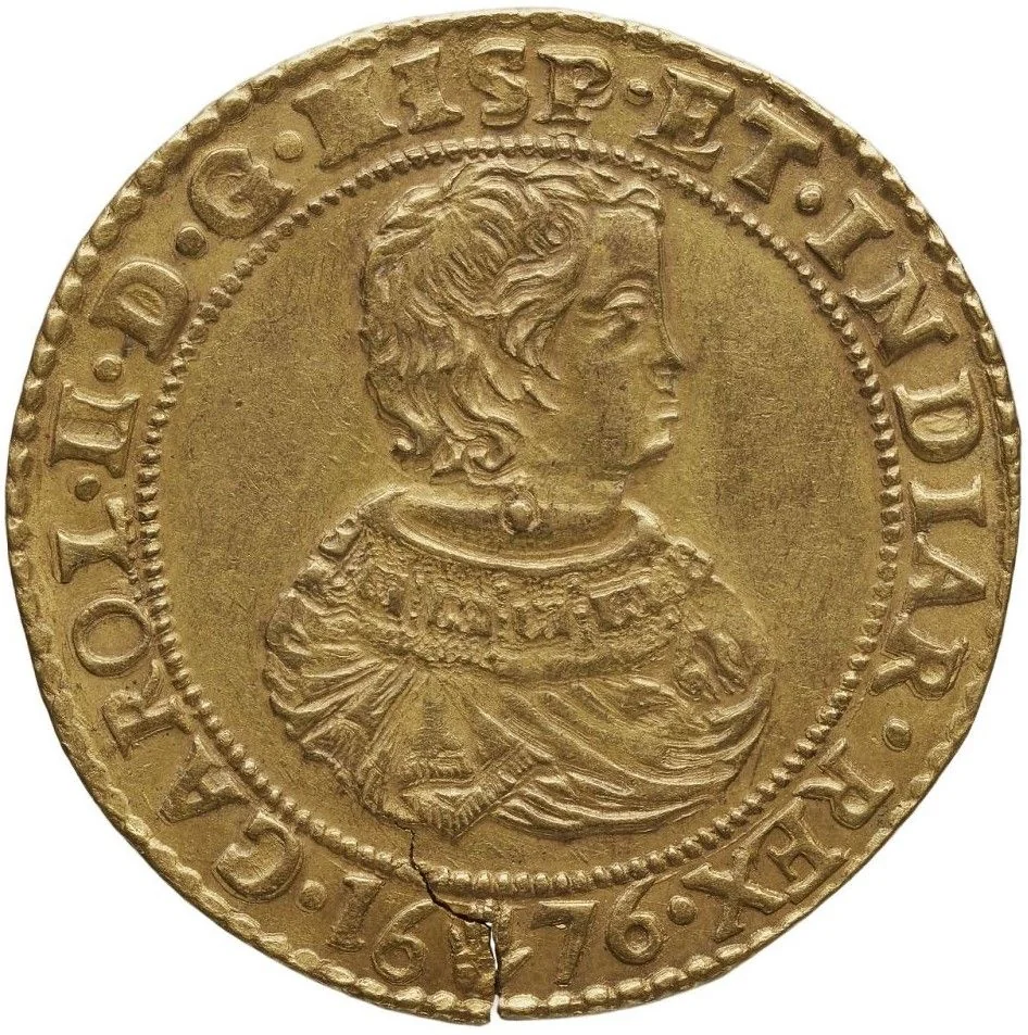 Child’s bust of Charles right within beaded circle. Date divided by mintmark below.