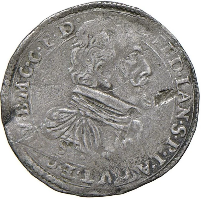 Right-facing bust of Prince Federico Landi in draped attire, wearing a milled collar with the Golden Fleece.