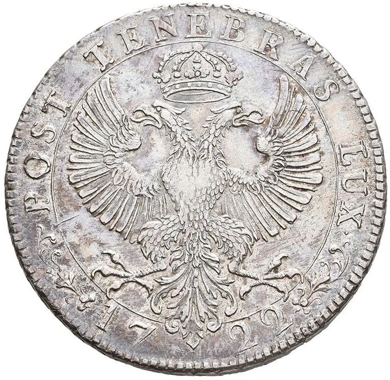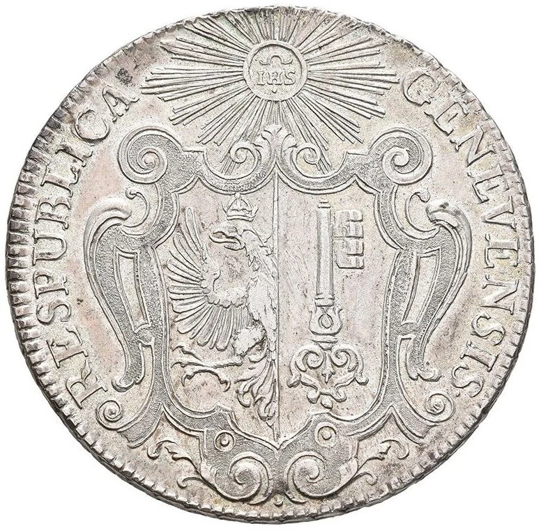Ornate arms with IHS in sun above a non-round hole in the mantling.
