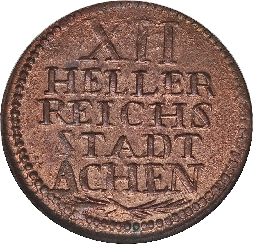 In 1757, the Free Imperial City of Aachen, while nominally autonomous within the Holy Roman Empire, operated within a complex and fragmented monetary landscape typical of the era. The city did not possess the sovereign right to mint its own coinage; instead, it relied on the circulation of a multitude of foreign currencies. The most important of these was the Reichsthaler, the theoretical standard silver coin of the Empire, along with regional thalers from neighboring states like the Electorate of Cologne and the Duchy of Jülich. However, daily small-scale commerce was dominated by a plethora of smaller coins, including local