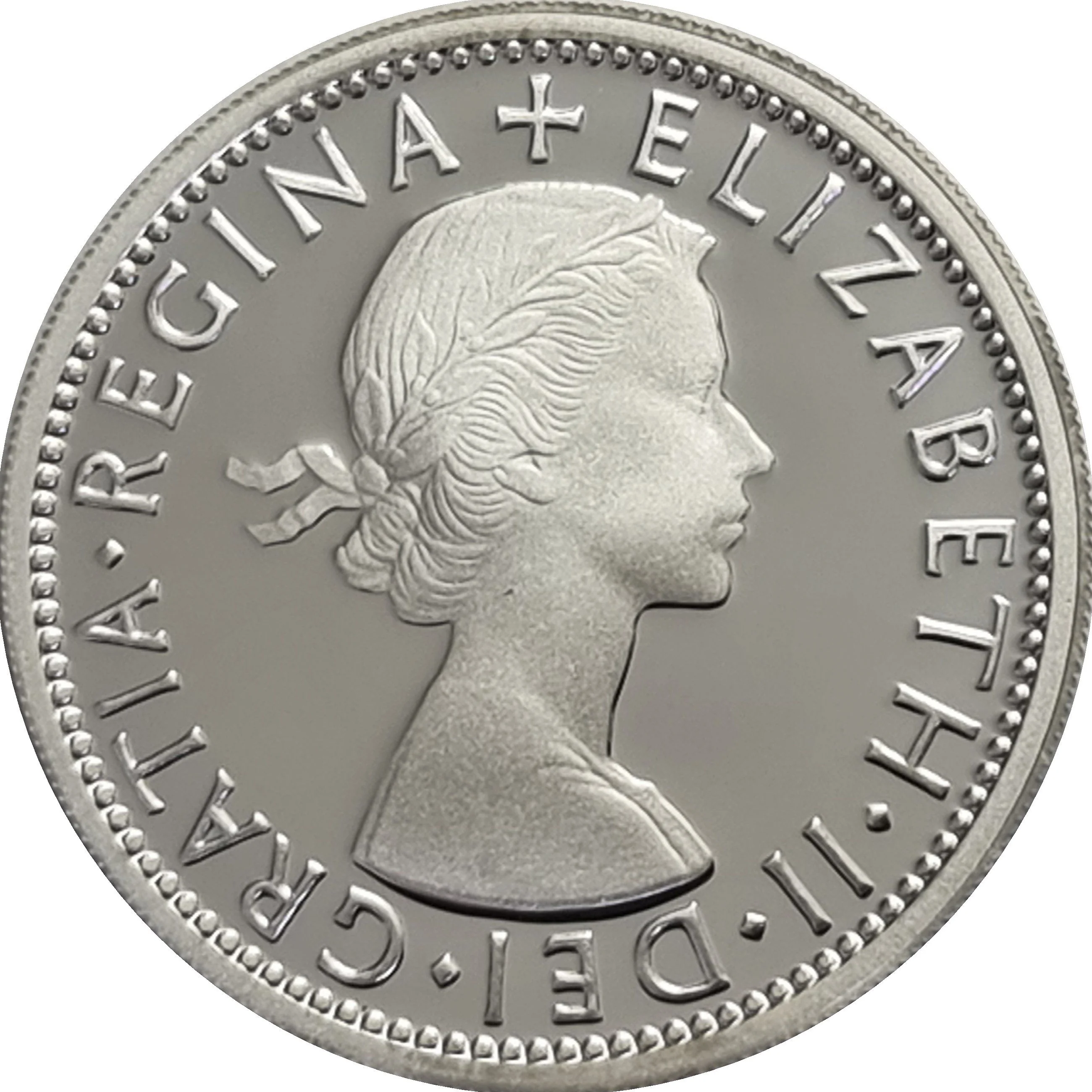 Florin 1953, KM#54: First portrait of Queen Elizabeth II facing right, laureate.