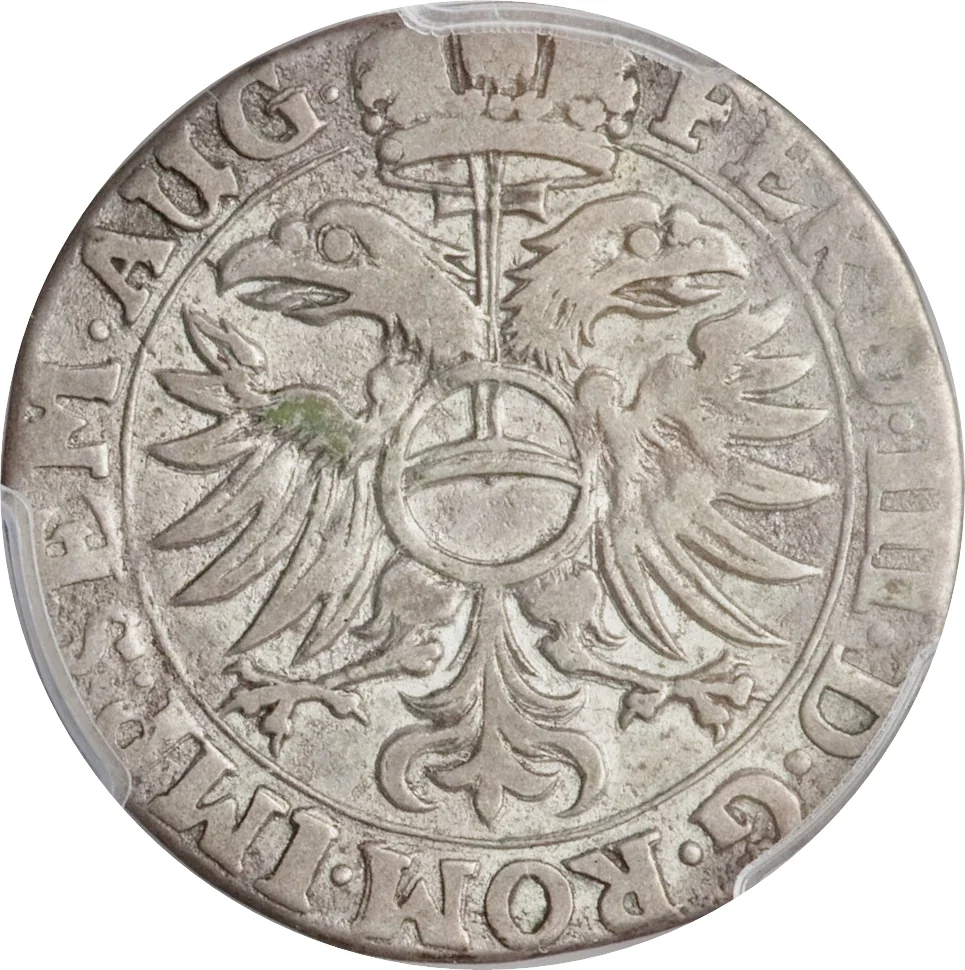 Crowned double-headed eagle in a circle. The crown divides the top legend: "Ferdinandus III Dei Gratia Romanorum Imperator Semper Augustus."