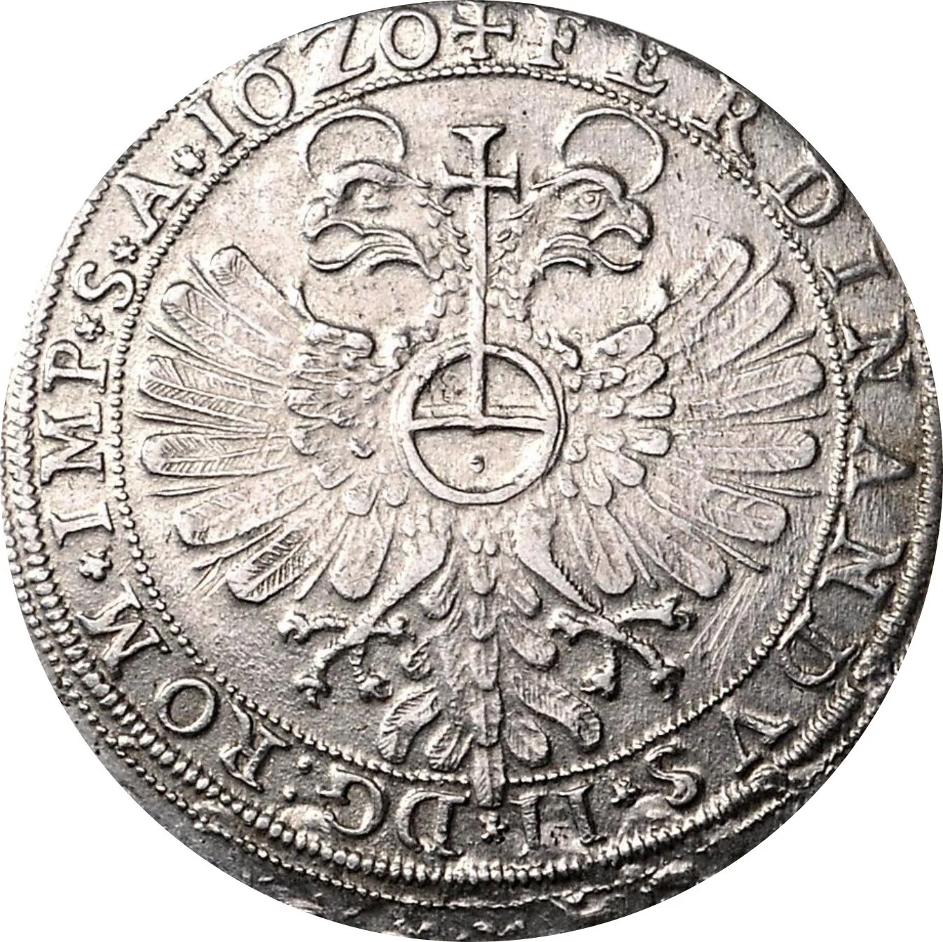 Double-headed imperial eagle holding an orb, encircled by legend.