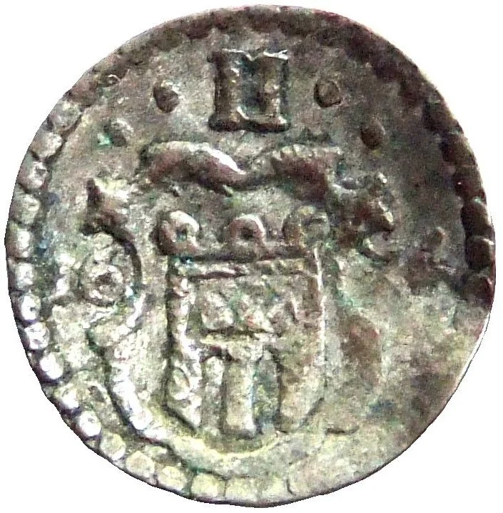 Arms divide date, ruler's initial above.