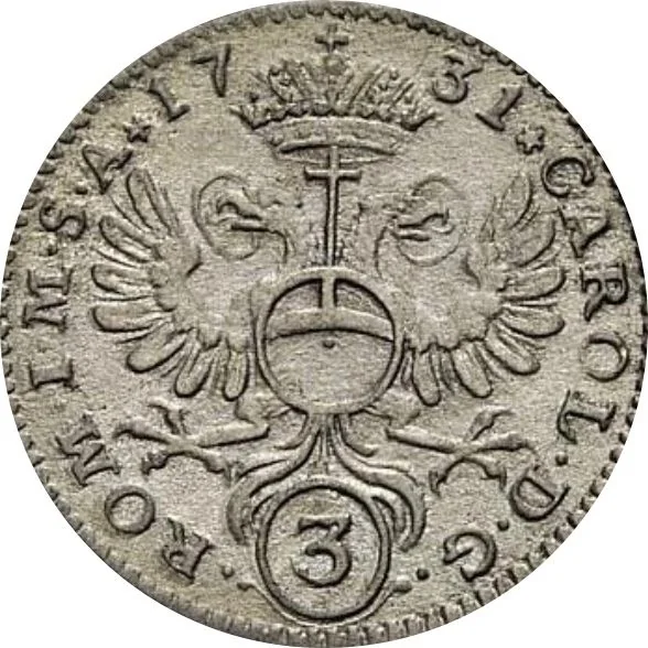 Crowned double-headed eagle holding an orb, with value below and date above.