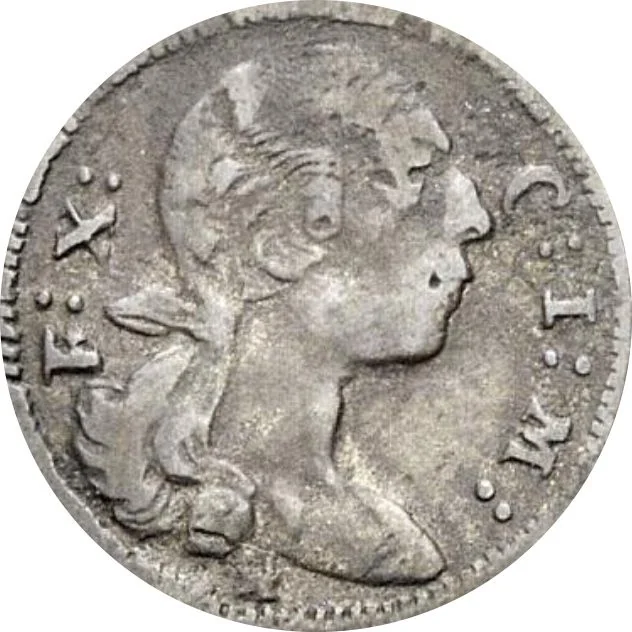 Imperial eagle with orb on breast, arms below splitting date, encircled by legend.