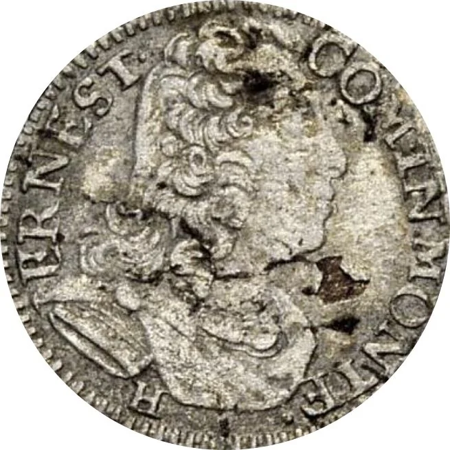 Arms in double cross, date below divided by arrow, surrounded by legend.
