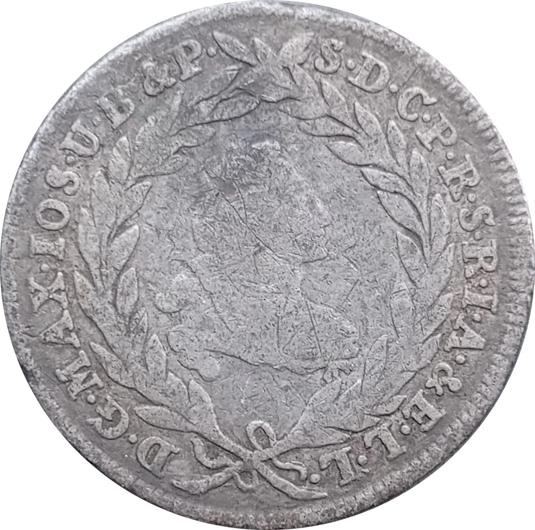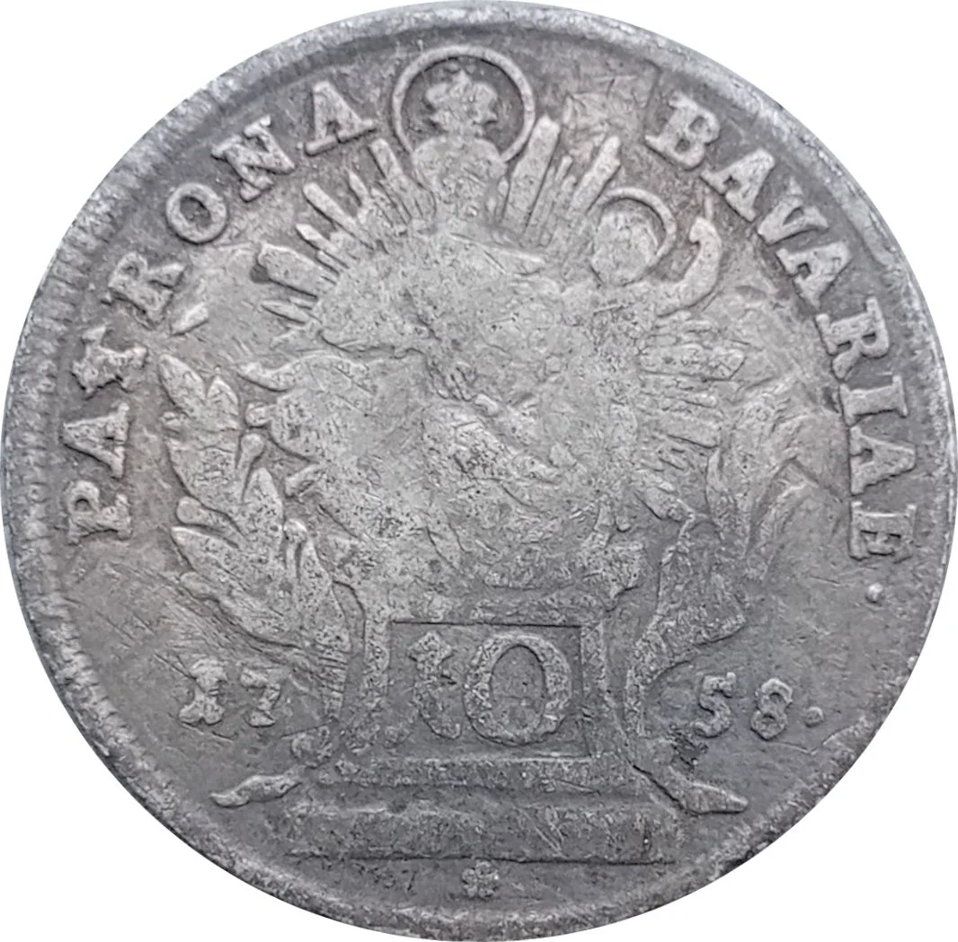 Madonna and Child on pedestal with "10," flanked by laurel and palm branches.
