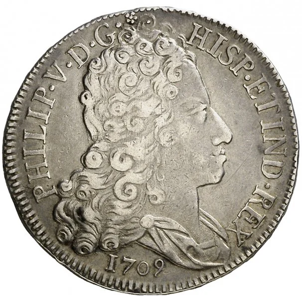 In 1709, Spain was embroiled in the War of the Spanish Succession (1701-1714), a devastating European-wide conflict over the throne of the Spanish Habsburgs. This war was the primary driver of a profound monetary and economic crisis. The royal treasury, under the claimant King Philip V, was exhausted from financing armies and subsidies to allies. To meet these colossal expenses, the government resorted to desperate fiscal measures, including repeated debasements of the coinage. The silver content of coins was systematically reduced, and vast quantities of low-quality copper