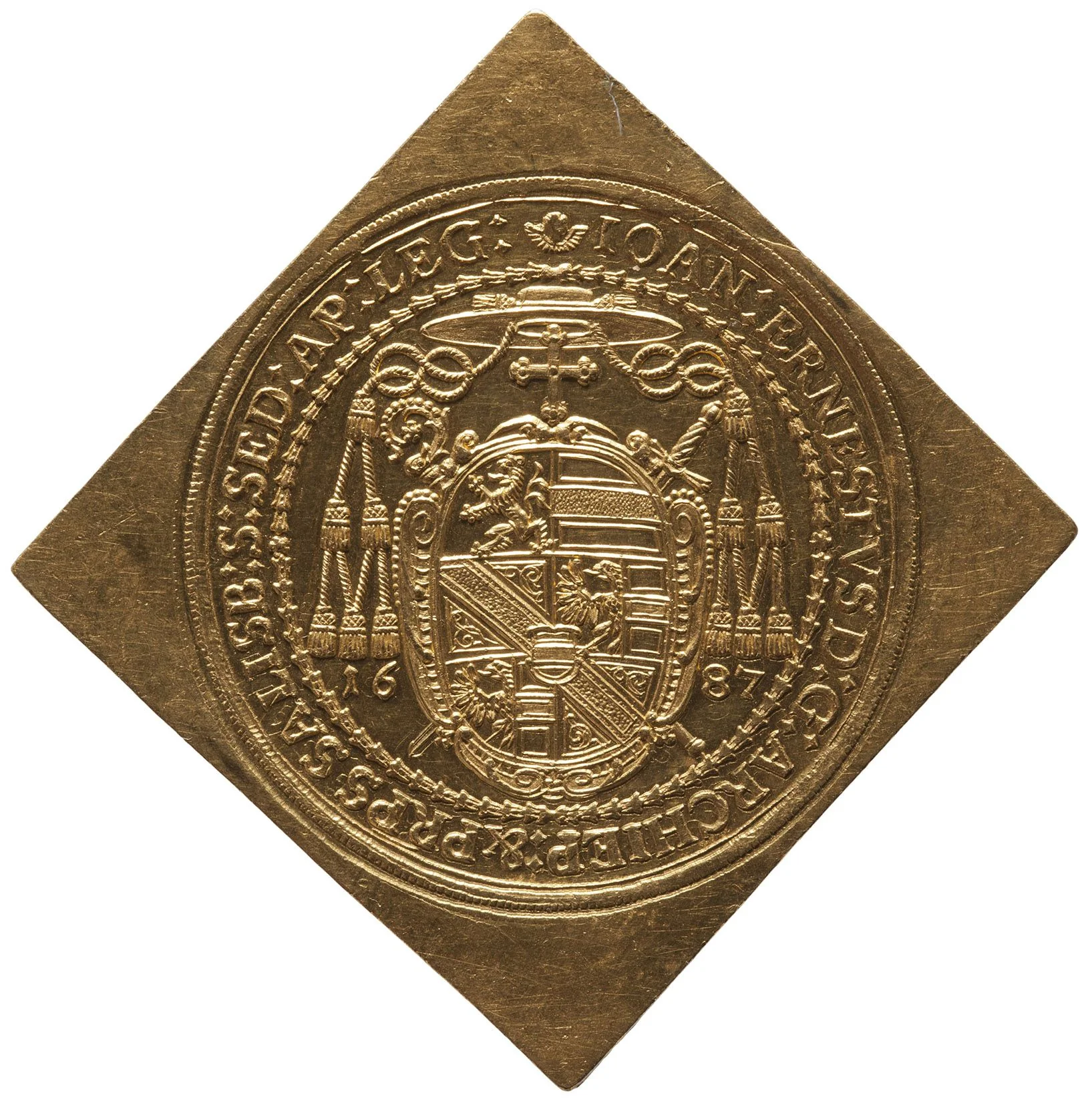 In 1687, the Bishopric of Salzburg operated within the complex monetary landscape of the Holy Roman Empire. As an independent ecclesiastical principality, it possessed the right of coinage (