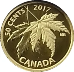 Two silver maple leaves with the denomination and year above.