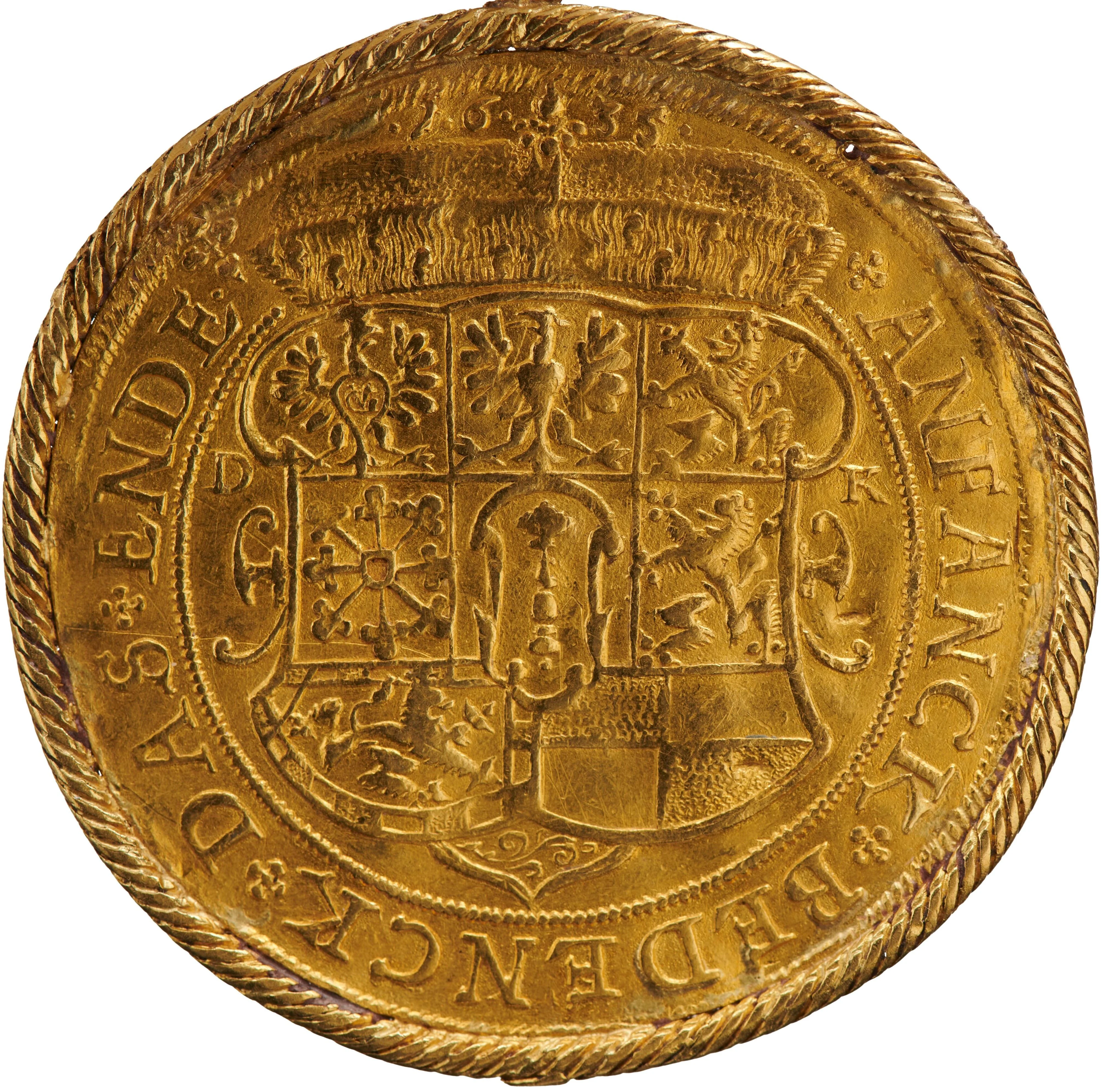 Eight scepter arms around a central shield in a frame; electoral hat above splits date.