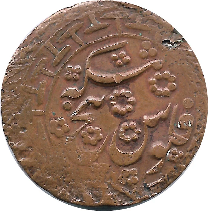 "Fulus panj tanga" inside a Greek meander circle.