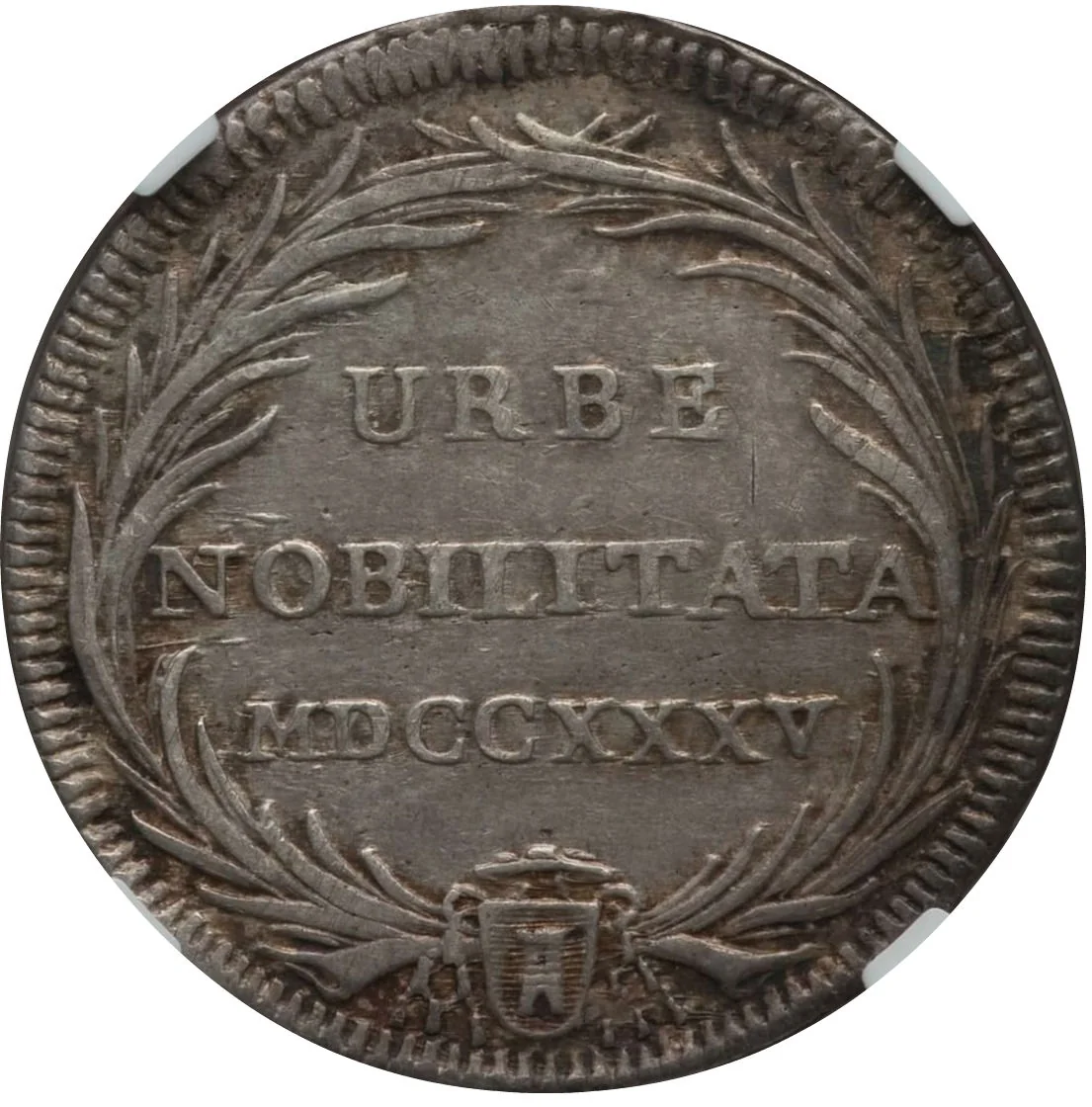 Inscribed in palm wreath.