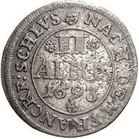 Crowned oval shield of Ducal Saxony, flanked by palm branches.
