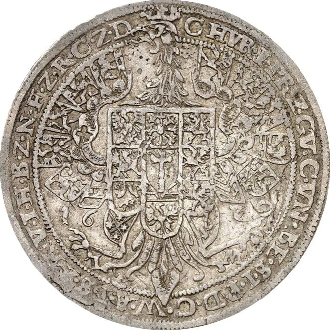 Crowned eagle with 9-fold chest, 14-fold wings, date above claws, mint initials below.