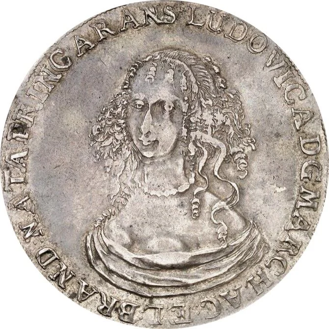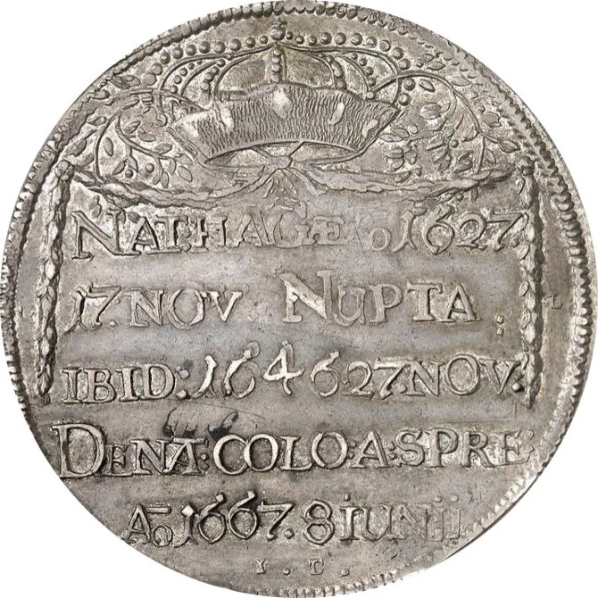 Description: Crowned frame encloses the first official's initials and a five-line inscription, with the second official's initials and the date on the final line.
