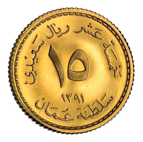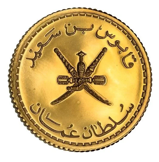 Oman's emblem: a sheathed khanjar over crossed swords, with "Sultan Qaboos bin Said" inscribed.