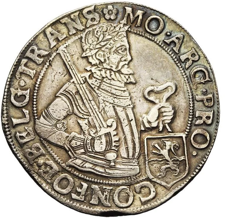 Laureate armored bust, holding a sword and a ribbon with the Overijssel arms.