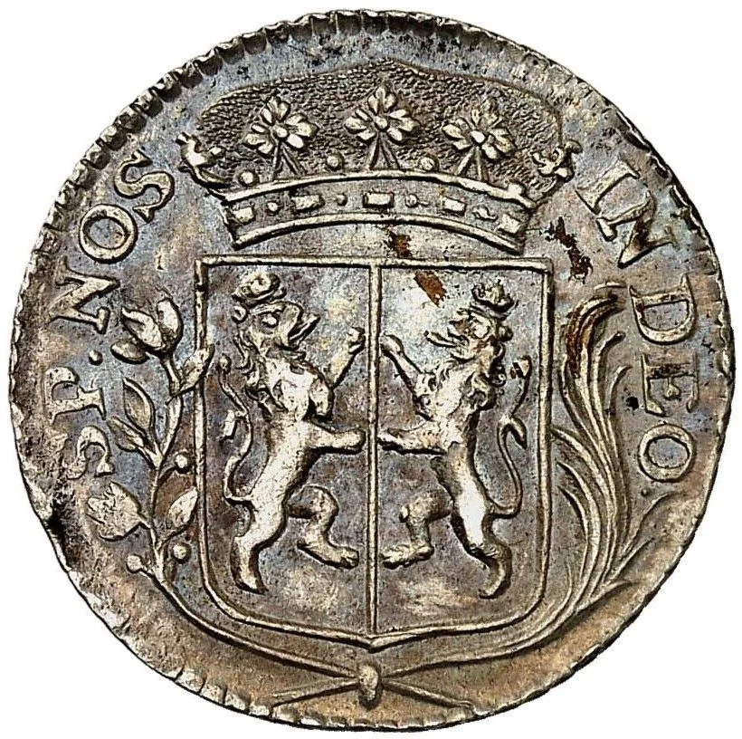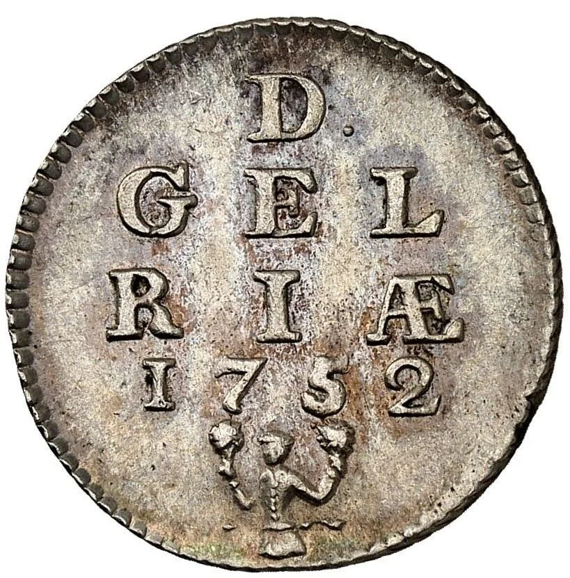 Crowned shield bearing Gelderland arms, flanked by sprigs.