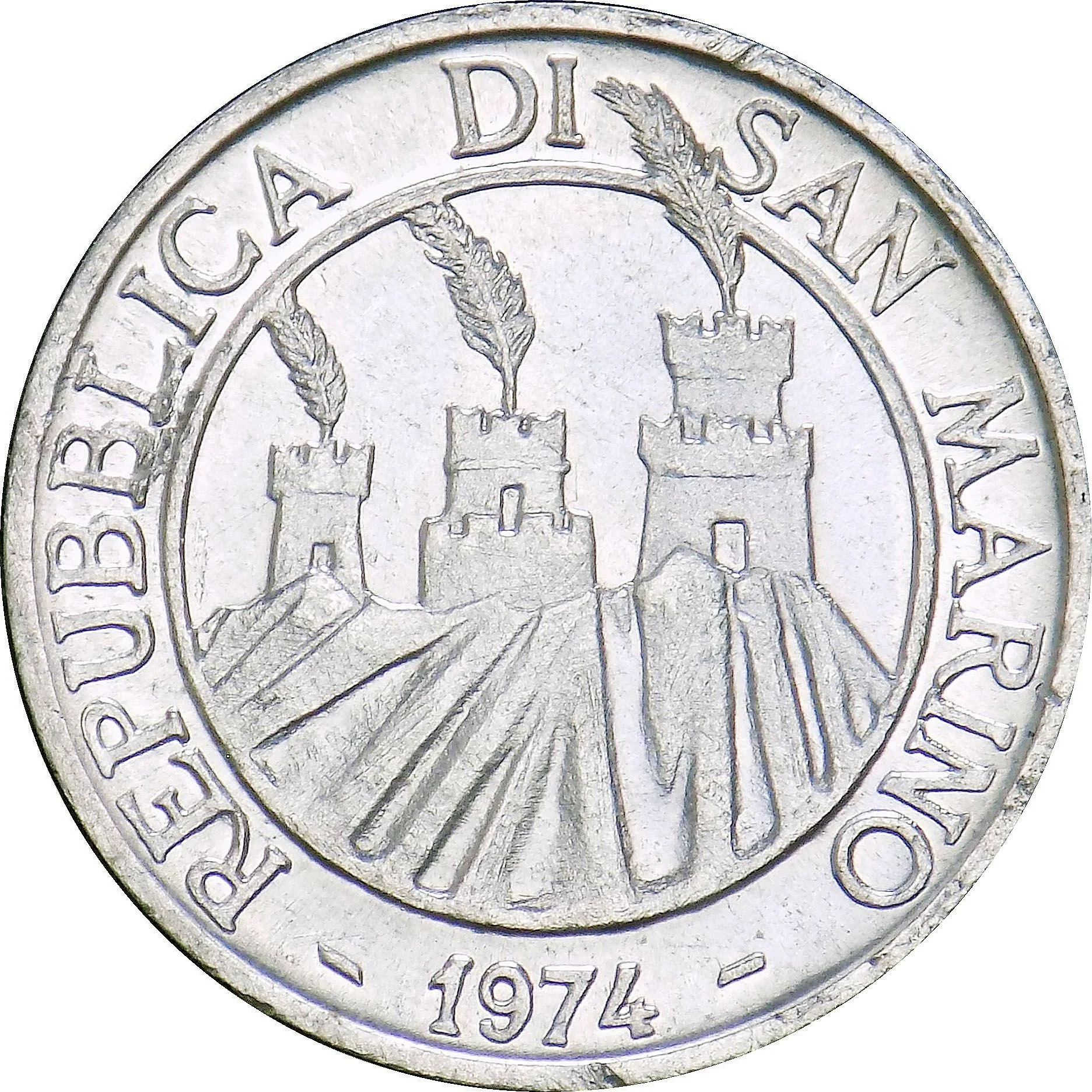 In 1974, San Marino’s currency situation was fundamentally defined by its close economic and monetary integration with Italy, governed by a series of bilateral treaties. The most important of these was the Convention of 1939, which established the Italian Lira as legal tender within the republic and granted San Marino limited rights to mint its own coinage. These Sammarinese coins, denominated in lire, were legally equivalent to their Italian counterparts and circulated interchangeably, but they were produced in strictly limited quantities, primarily for commemorative and collector purposes rather than for driving the domestic economy. The country had no central bank and did not issue paper currency, relying entirely on Italy for its circulating medium.