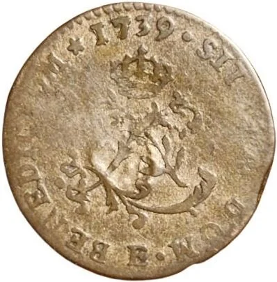 Small crowned C with traces of Louis XV 2 Sols legend.