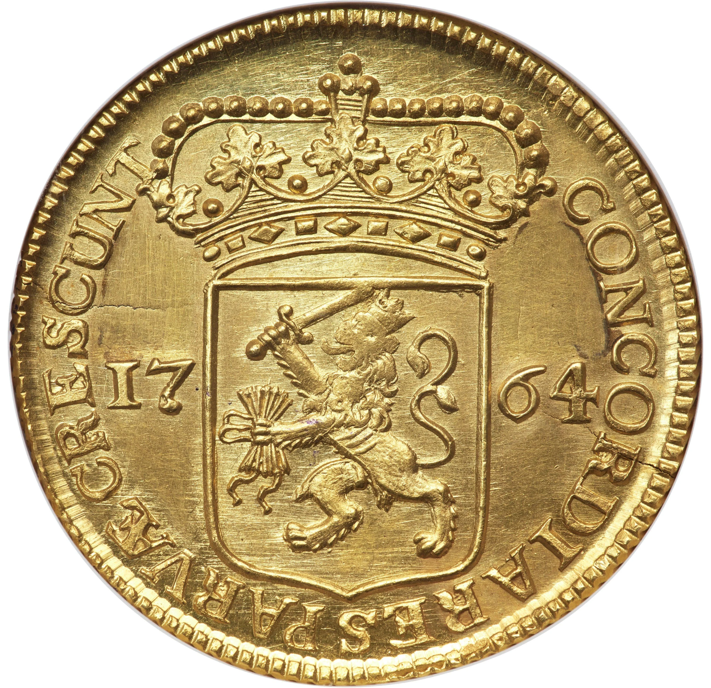 Knight in armor facing right, sword on shoulder, ribbon in left hand, crowned Zeeland shield at feet.
