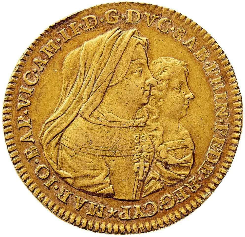 Busts of Vittorio Amedeo II and his mother, facing right.