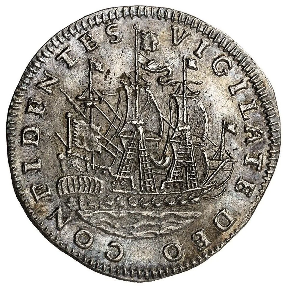 Utrecht provincial arms, city arms at center, divides value, date above.